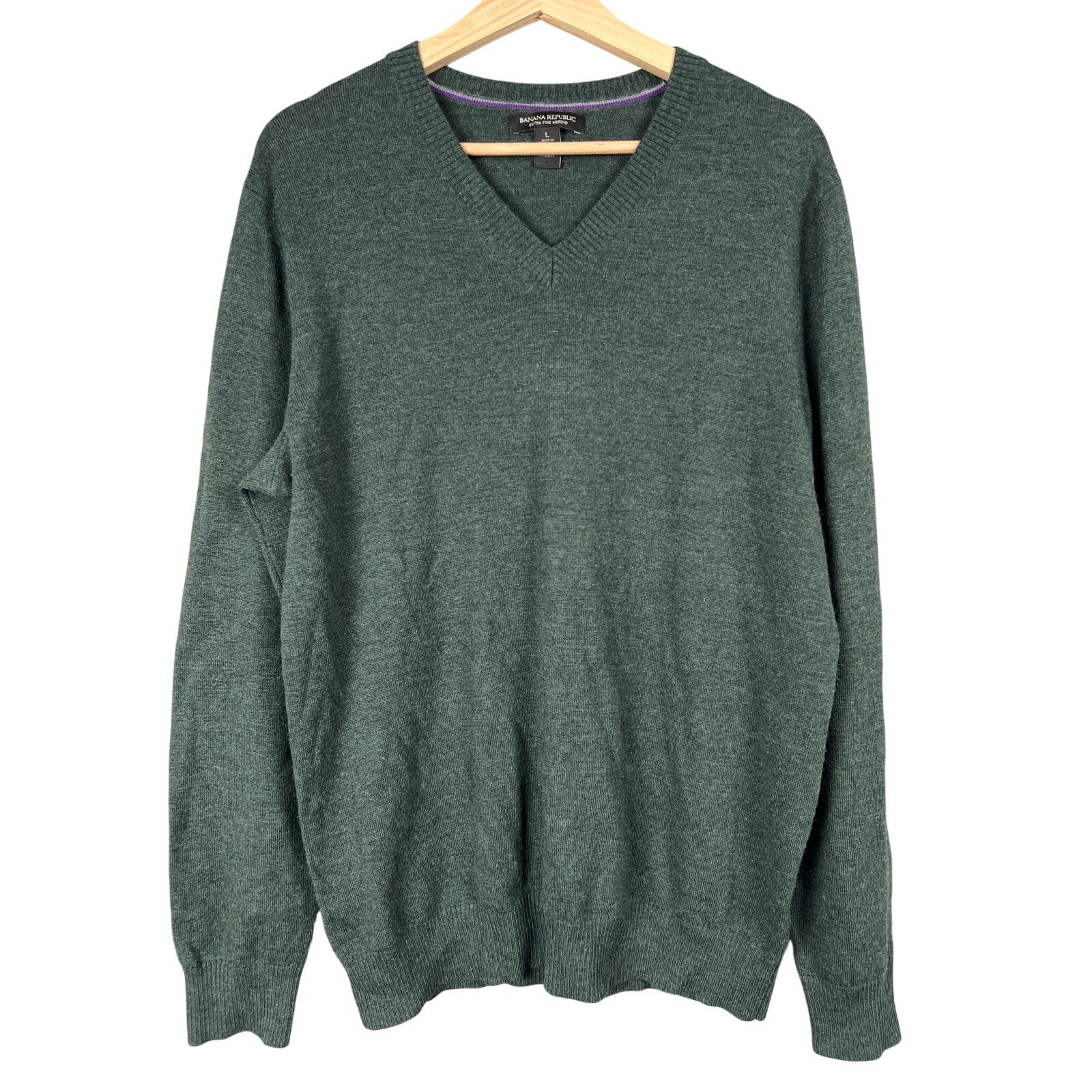 BUY IT NOW and begin wearing this Banana Republic Pulllover Green Sweater Size Large Extra Fine Merino in the days ahead!