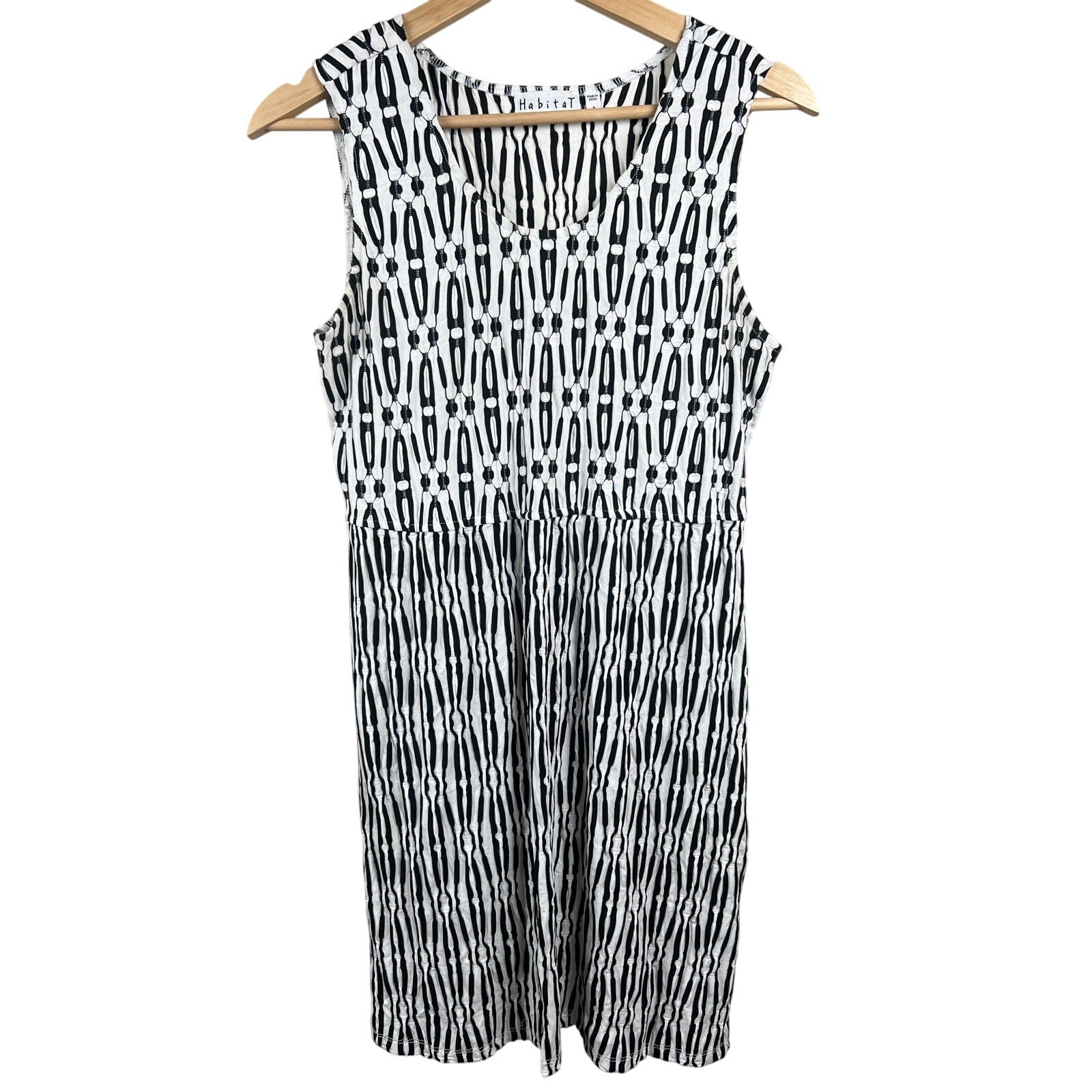 HABITAT Black and White Crinkle Tank Sheath Polyester Spandex Size Small