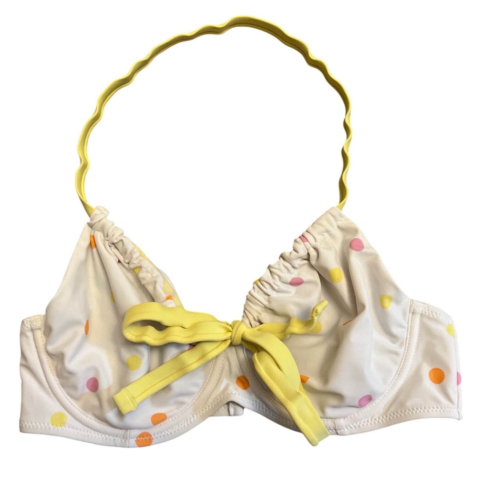 Ivory Rose Underwire Bikini Swim Halter Top Size 32DD White with Polka Dots EUC