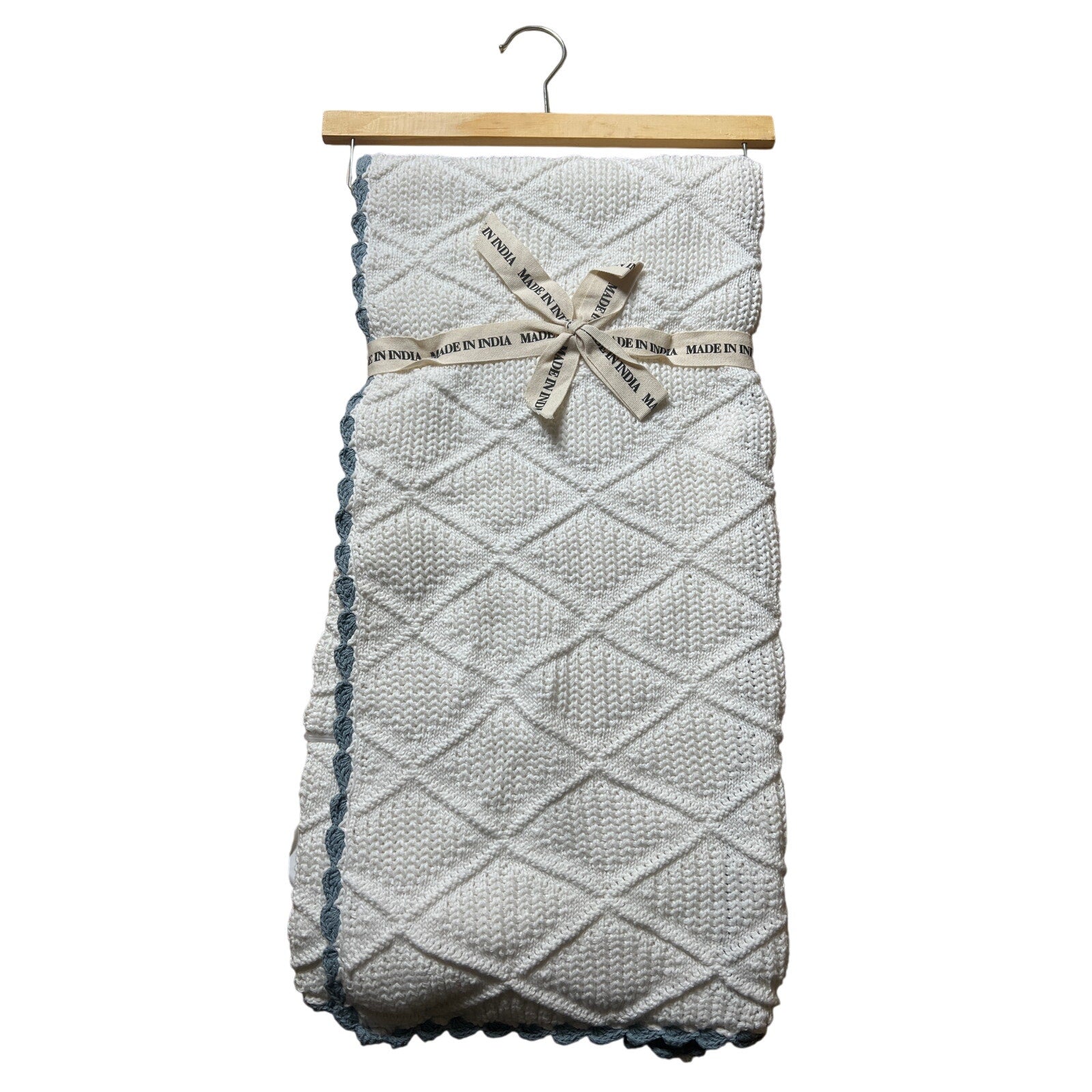 NWT Made In India Toddler White Crochet Blanket