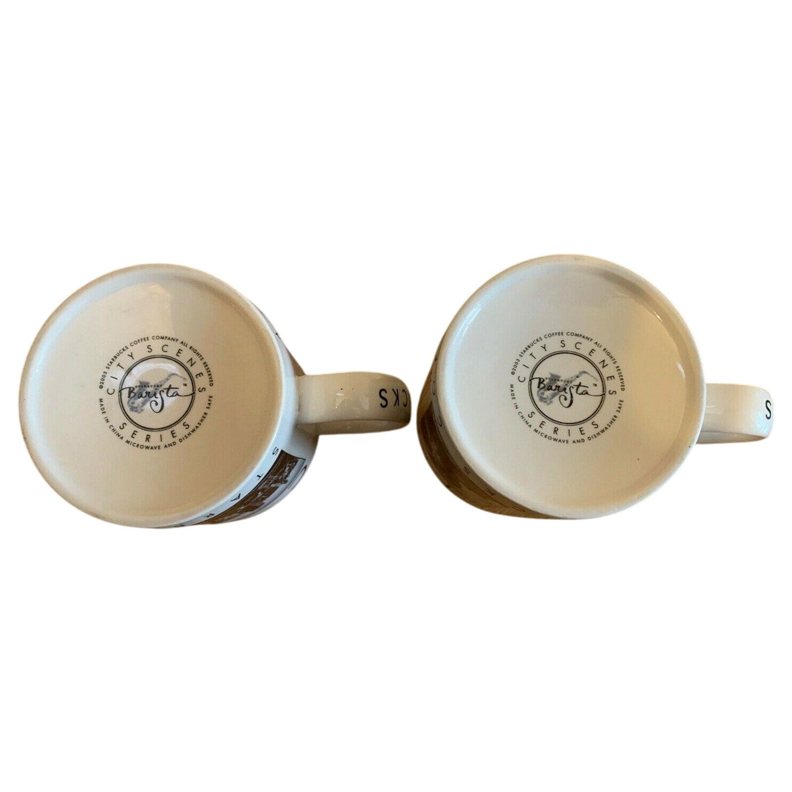 Starbucks 2003 CHICAGO City Scenes Barista 14oz coffee mug set - Qty 2