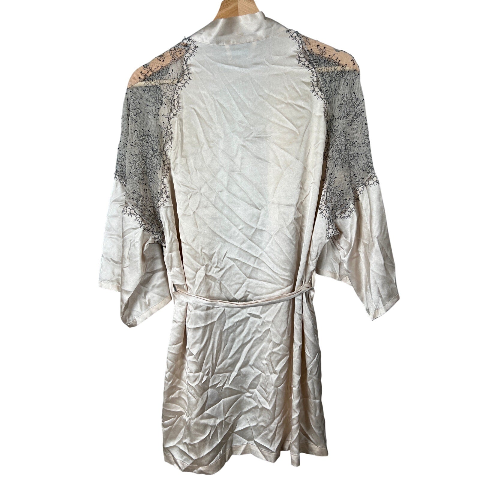 Victoria Secret XS/S Light Pink Satin Robe Kimono Short Black Lace Silky